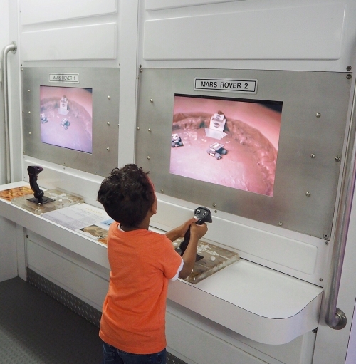 一番ボリュームのある「Starship Gallery」コーナーには迫力ある模型がいくつもあり、宇宙での滞在について触れることができます。無重力空間での生活イメージや、操作盤が並ぶコントロールスペースなどを間近でみることができリアリティたっぷり!これらの小さな空間に、技術が凝縮されているのだと思います。
