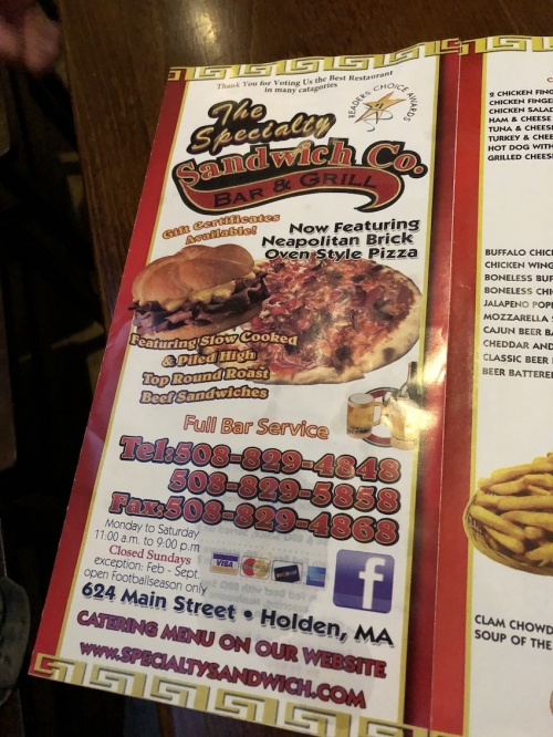 「Specialty Sandwich Company」は、アメリカ東海岸マサチューセッツ州、ウースター群のホールデン(Holden) にあるサンドイッチ屋です。