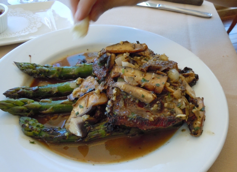 Monthry Special(今月のおすすめ = 季節によって変わります)でいただいた 「Iron Steak」は$35(約4,500円)。ただステーキが出てくるのではなく、ポータベラという茸のスペシャルソースに、とても太いアスパラガスまでセットになっていました!