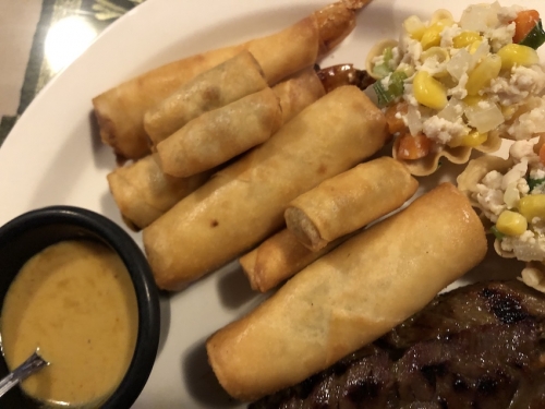 揚げ春巻き(egg rolls)はアメリカのアジア系レストランにはほぼ必ずあるメニューですが、現在ではアジア系以外のレストランでも、おつまみの人気メニューとして定着しています。
