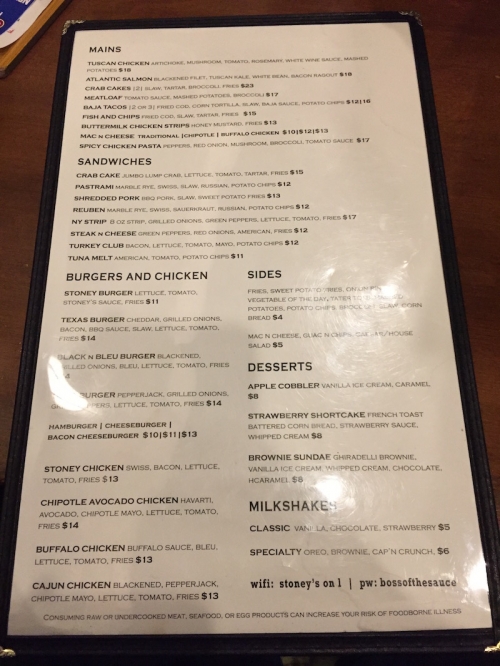 ヨーロッパ諸国とは違い水はアメリカでは無料なのですが、水のボトルには「Stoney’s」 独自のデザインが施されています。有名店らしい遊び心が感じられます。