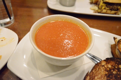 トマトスープとともに提供されます。 トマトスープなしの場合は9ドル(990円)です。チーズのみを挟んだトーストのサンドを、ただ鉄板で焼いただけのシンプルな逸品です。