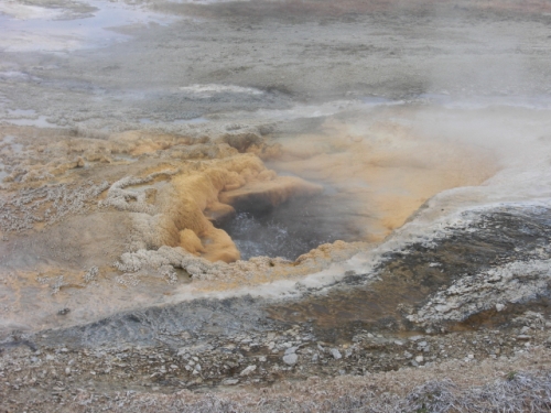 Castle Geyser キャッスルガイザー は、園内最古のガイザーだそう。まさに“お城”というに相応しいくらい大きさなのですが、噴出間隔は10~12時間。残念ながら筆者はタイミングが合いませんでした。