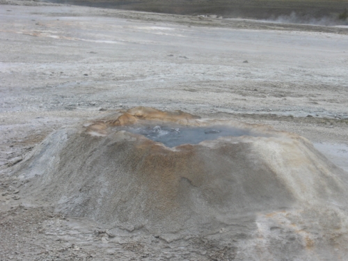 その時の噴出状況によって次の時間が判断できるらしく、インターネットなどで事前予告はしていないようです。おおよその間隔は 65分〜90分 、噴出まで時間がある場合は、他のガイザーやプールなどを見にすぐ近くのトレイルを散策すると良いと思います。