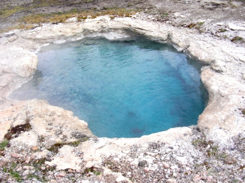 この水の美しさに触れたくなってしまいますが、このブルーはバクテリアですら生存できないほど高温という証拠。