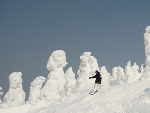 十和田八幡平国立公園の「八甲田ロープウェー」は、年間を通して運行し、山麓駅から標高1,324mの八甲田山頂まで片道10分程で到着します。ゴンドラから望む景色は、初夏に新緑、秋は紅葉、冬には雪の樹氷と四季折々楽しめる絶景。冬はスキー場として賑わい、アオモリトドマツ(オオシラビソ)の樹氷をぬうダウンヒルが人気です。