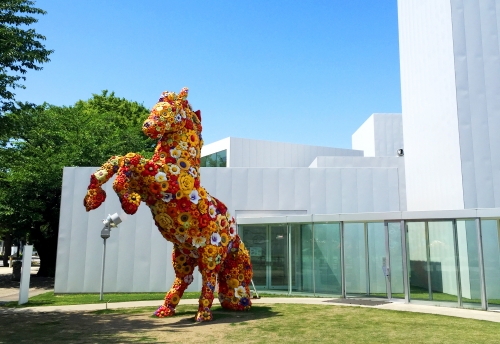 アートによる街づくりプロジェクト「Arts Towada」計画の拠点として2008年にオープンしました。奈良美智や草間彌生、オノ・ヨーコ、山本修路など世界で活躍するアーティストの作品が、美術館の中だけでなく、敷地内のいたるところに展示されています。とくに目を引くのが、美術館の入り口に展示されている、韓国のチェ・ジョンファによる作品「フラワー・ホース」。色鮮やかな花々があしらわれた、全長5.5mの巨大な作品です。