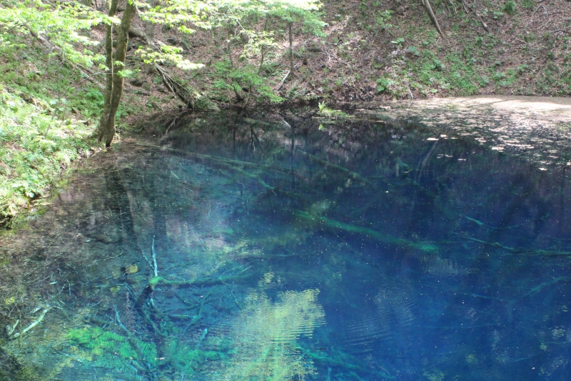 青池に匹敵する透明度を誇る沸壺の池。ですが、青池だけを見て帰る方が多いのでしょうか。青池周辺の大混雑に比べこちらは人も少なくなり、ゆっくりと見ることができるのでオススメです。