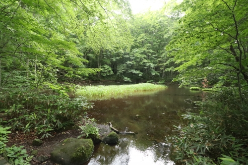 清流が見えだしたら次の沼・鏡沼(かがみぬま)の近くです。鏡沼は人造の沼で、上流の月沼から発生した流れの一部をひいて造ったとされています。6つの中で最小の沼です。