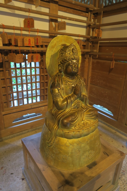 境内の奥では、ノートを手にした「想い出草観音像」が微笑んでいます。