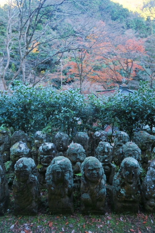 紅葉シーズンに訪れると、苔むした石像千二百羅漢に朱色の落ち葉が積もっている姿が美しいです。一つ一つ顔が異なり、ユニークな羅漢像もあるので、じっくり見て行くのも楽しいです。