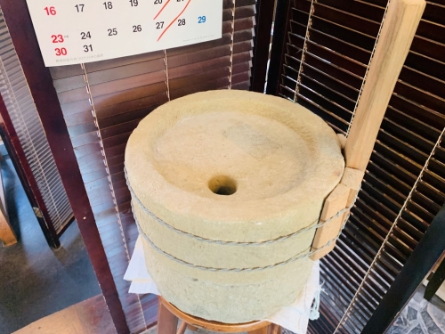 また、「手打ち」ならではの、そば打ち台や石臼も置いてありました。