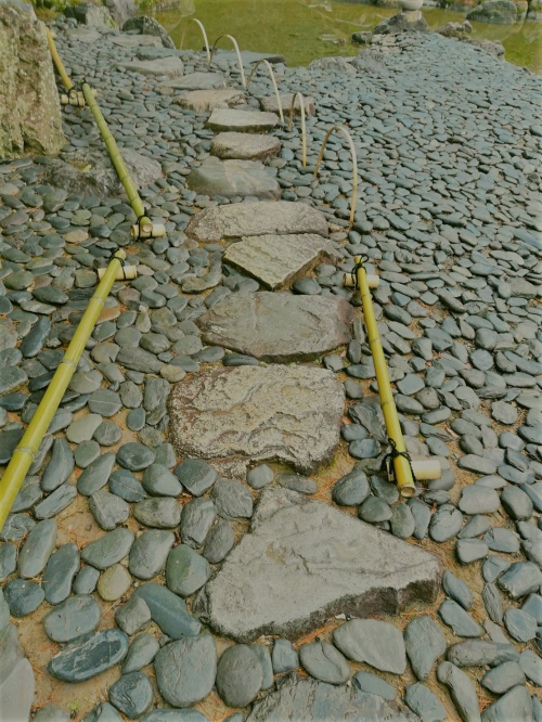 桂離宮の見学で筆者が感動したものの一つが「石」です。石の色も変わっていましたが、とても綺麗でした。そして、石の置き方にもそれぞれ工夫が凝らされていたのです。