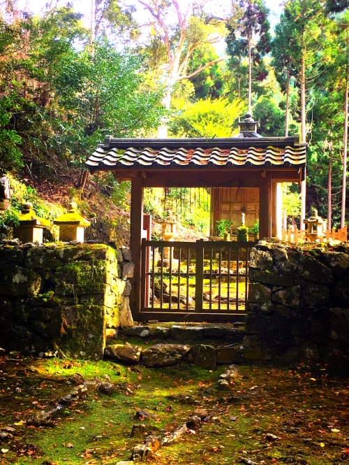 御廟の入り口には、明恵の遺訓である「阿留辺畿夜宇和」の石碑が。廟内の宝篋印塔、如法経塔も重要文化財に指定されています。