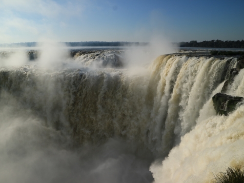 イグアスの滝とは、ブラジルとアルゼンチンの国境となる川(イグアス川)にある巨大な滝のことです。滝の80%がアルゼンチン側、残りの20%がブラジル側にあります。アルゼンチン側からは、イグアスの滝を様々な角度から楽しめます。