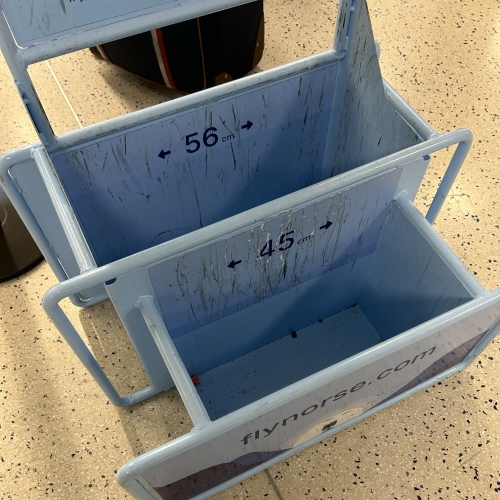 追加で機内に持ち込みたい荷物がある方は、追加料金にて頭上の荷物入れに入れられる荷物を持ち込むことができます。サイズは56×45×20センチです。なお、どちらも重さの制限はありませんでした。