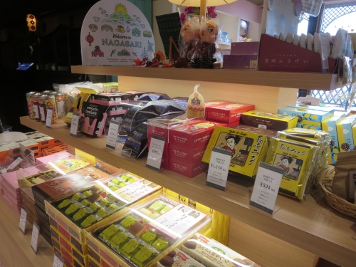グラバー園で思う存分観光を楽しんだ最後に配置されているこちらのショップでは、限定商品が所狭しと販売されていて目移りします。