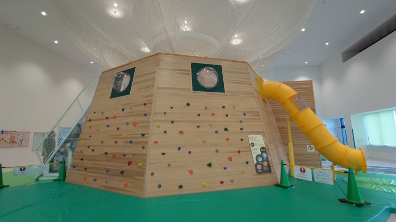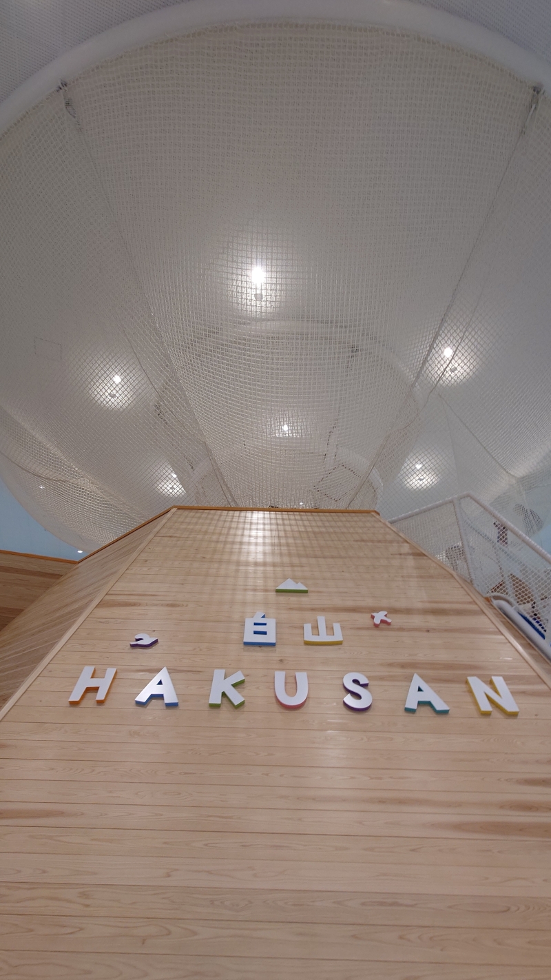 霊峰白山をモチーフとした見上げる高さの大型のネット遊具には、クライミングや滑り台もあり、めいっぱい遊べます。