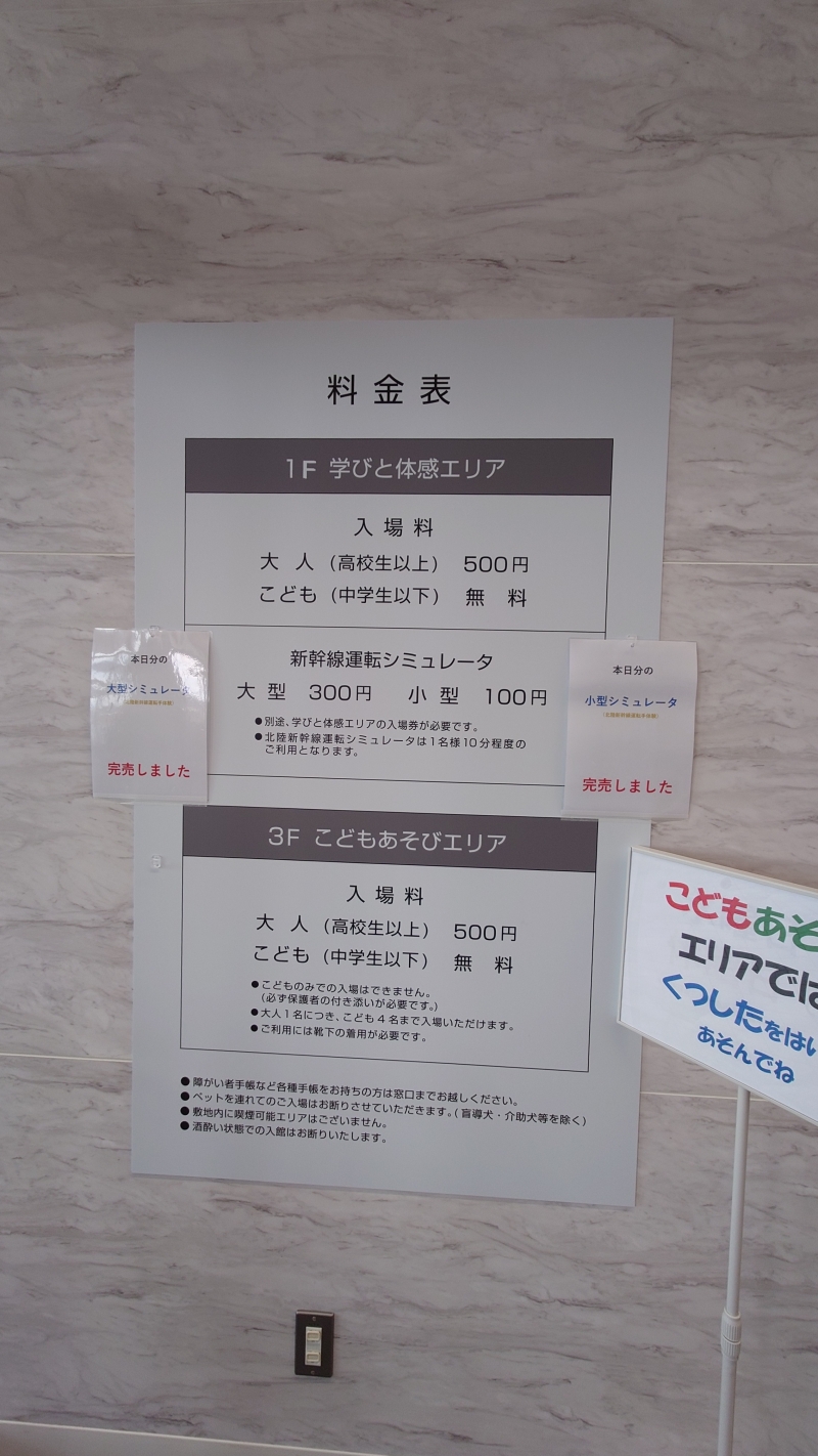 1階の新幹線 学びと体感エリアは、大人500円、中学生以下の子どもは無料で利用できます。