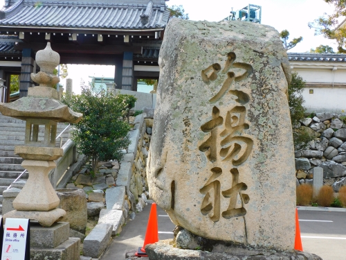 今治城の旧城名「吹揚城」の名がお社の名前となっており、明治5年より今治城内に鎮座しています。境内には他にも、吹揚稲荷神社、麁香神社、土居神社、住吉神社があり、多くの今治市民に親しまれています。