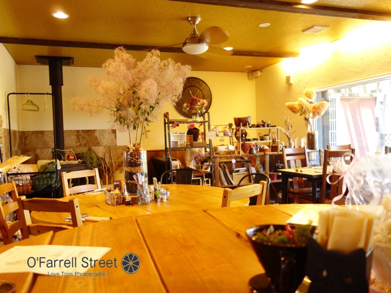 廃校になった小学校をリノベーションして、工務店が主体となり家具やアートショップ、キャンプサイトなどが入った複合施設です。元小学校の職員室と校長室をリノベーションした、植物いっぱいのカフェ。