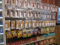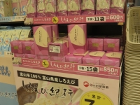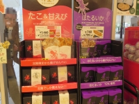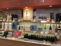 写真:まき 富山の地酒と珍味のコーナー |  写真:まき 左:北陸から揚げせんべい(1,576円)/右:ほたるいか揚げせんべい(799円) |  写真:まき 左:立山特別本造酒(300ml591円)/右:立山吟醸(300ml790円) |