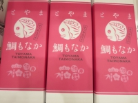 写真:まき とやま鯛もなか(6個1,850円) |  写真:まき 左:茶鹿の子餅(12個1,200円)/中:かのこ姫(12個1,100円)/右:鹿の子餅(10個1,543円) |  写真:まき どら焼き清月(216円) |