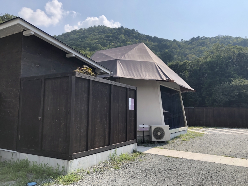 直径7mドームテントの「アクアドーム」が通常のグランピング施設。お部屋は2タイプあり、1つは川沿いに専用デッキがあり、川のせせらぎと共に渓谷の風景美が楽しめます。(ワンちゃん不可です)