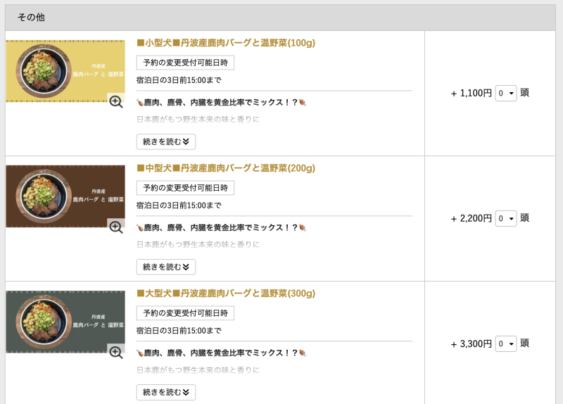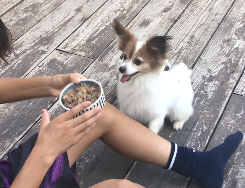 先ほどのオプションの「ダッチオーブンで炊く白ごはん」と同じように、ワンちゃんが大喜び間違いなしの「ワンちゃん専用ご飯」も付けることができます!
