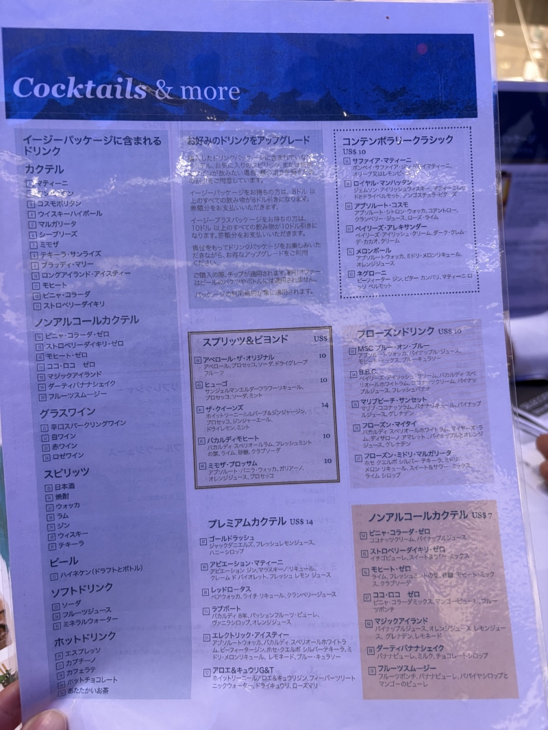 人気クルーズ船!MSCベリッシマを徹底解説【フード&ドリンク編】