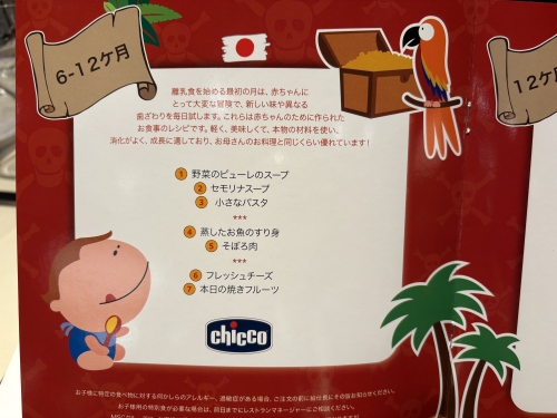 6ヶ月〜となっていますが、日本の離乳食の基準とは全く異なり、例えば蒸した魚のすり身は蒸した白身魚をフレーク状にしたもの、そぼろ肉はグリルした肉をほぐしたものと、どちらも固形なので離乳食を始めたての赤ちゃんには食べるのが難しいかと思います。また昼夜はレストランでもビュッフェでもおかゆをもらうことはできないので、アレルギーなどでパンやパスタを食べることができないお子様連れの方は持参することをおすすめします。