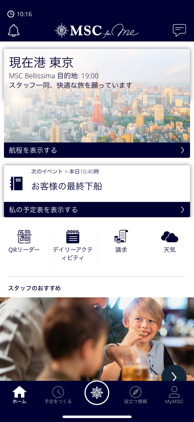 比較的乗船者の平均年齢が低く、小さい子ども連れのファミリーも多いベリッシマ。子どもと一緒に楽しめるスポットやイベントもたくさんあります。