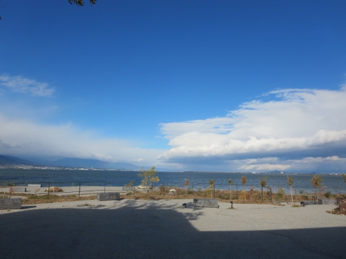 駐車場に車を停め、少し歩くと琵琶湖から吹く風が心地良くて開放的な気持ちになり、つい空を見上げてしまいます。
