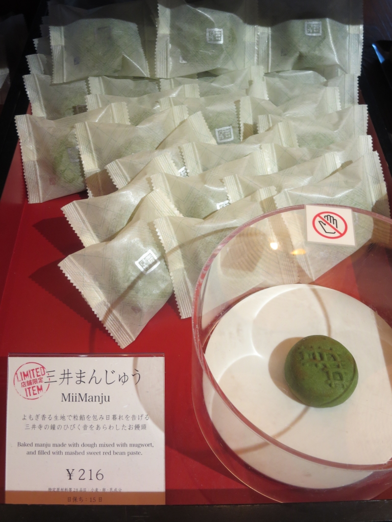蓬香る生地で粒餡を包み、日暮れを告げる三井寺の鐘の響く音をあらわしたそう。店舗限定です。