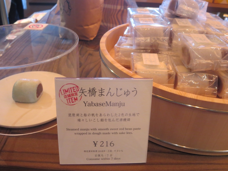 琵琶湖の船と帆をあらわした2色の生地で瑞々しいこし餡を包んだ酒饅頭だそう。店舗限定です。