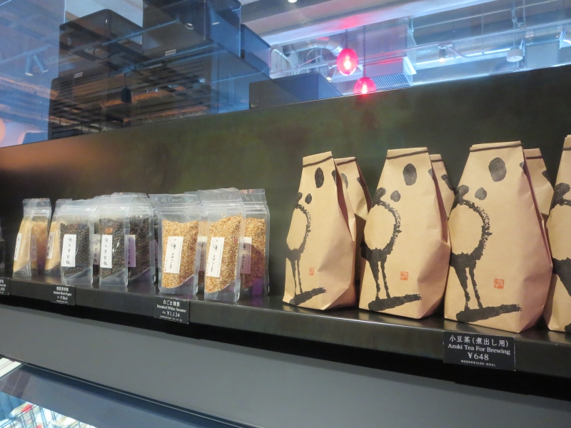 手前から、小豆茶(煮出し用648円)・白ごま燻製(60g1,134円)・燻製黒胡椒(564円)・燻製岩塩(150g1,058円)。
