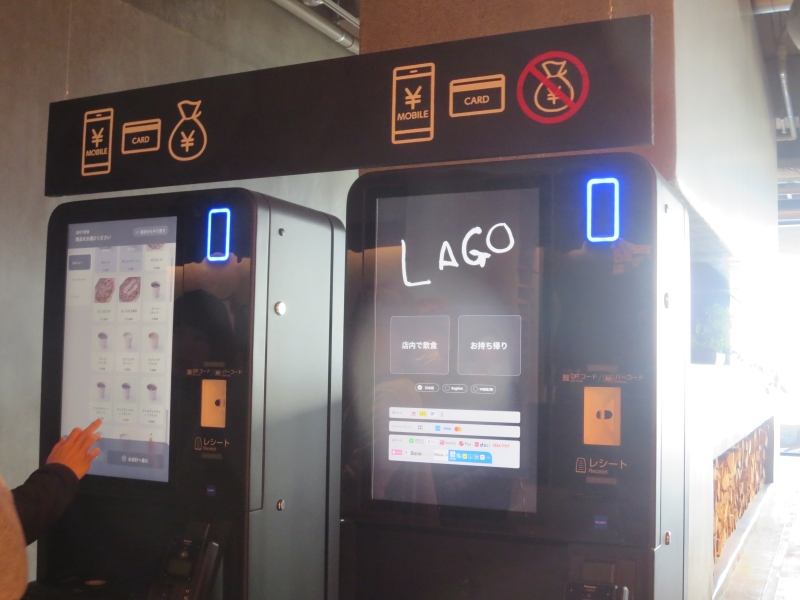 先にタッチパネルでセルフオーダーしましょう。店内飲食かお持ち帰りを選んでからメニューを決めます。