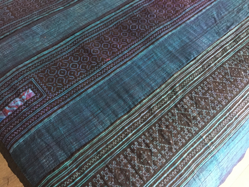 ベトナムのサパの市場で購入した、藍染のモン族の刺繍生地