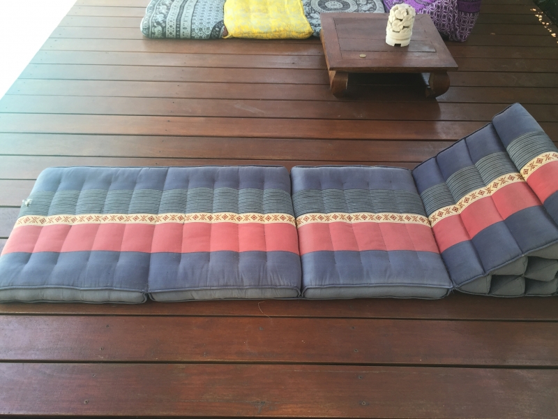 また、こちらの三角マットも張り替えました。1枚の布で2通りに使えましたよ。