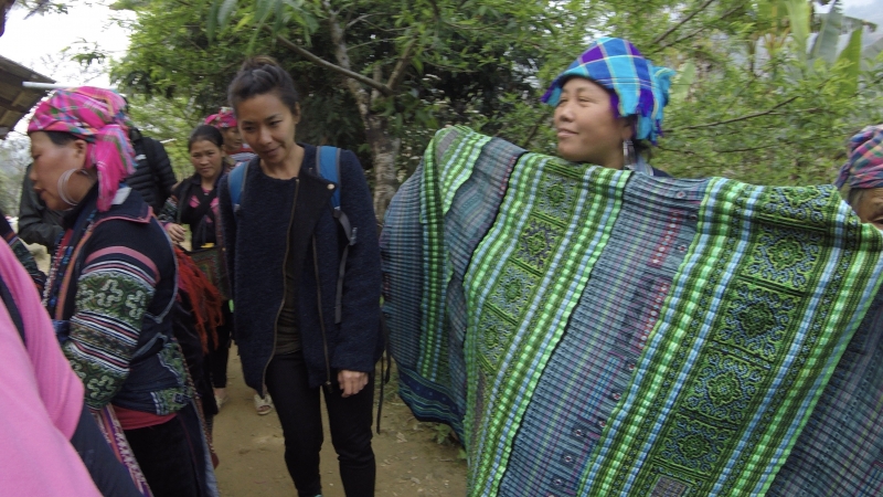 正確には、買わざるおえなかったのが、こちらの生地。サパのトレッキングツアーに参加すると、最後にモン族の人達が小物など売りに来て、何かを買わないといられない状況に追い込まれるのですが、その時に買ったモン族刺繍生地です。