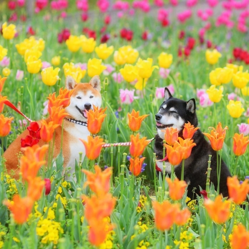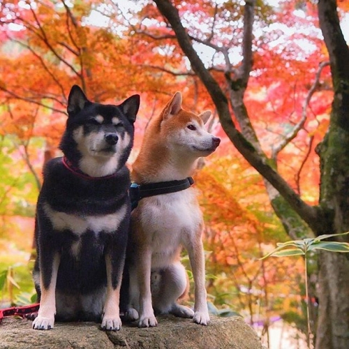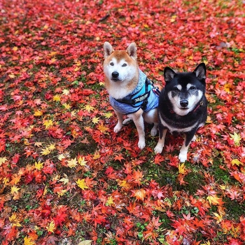 世界での柴犬ブームの中でも、日本の赤柴のムサシくんと黒柴ネネちゃんのアカウント、black_red_jpさん。