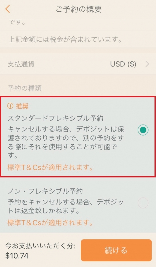 出典:itunes.apple.comHostelworld予約画面:スタンダードフレキシブル予約を選ぶとデポジットを他の予約で再利用可能