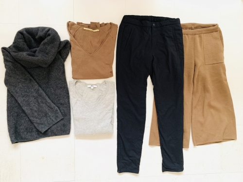 写真:トラベルライターモヘア、カシミヤ、ウールが鉄板!地味すぎる冬服ですが、暖かさ第一。黒いパンツは裏が起毛になっていて暖かです。