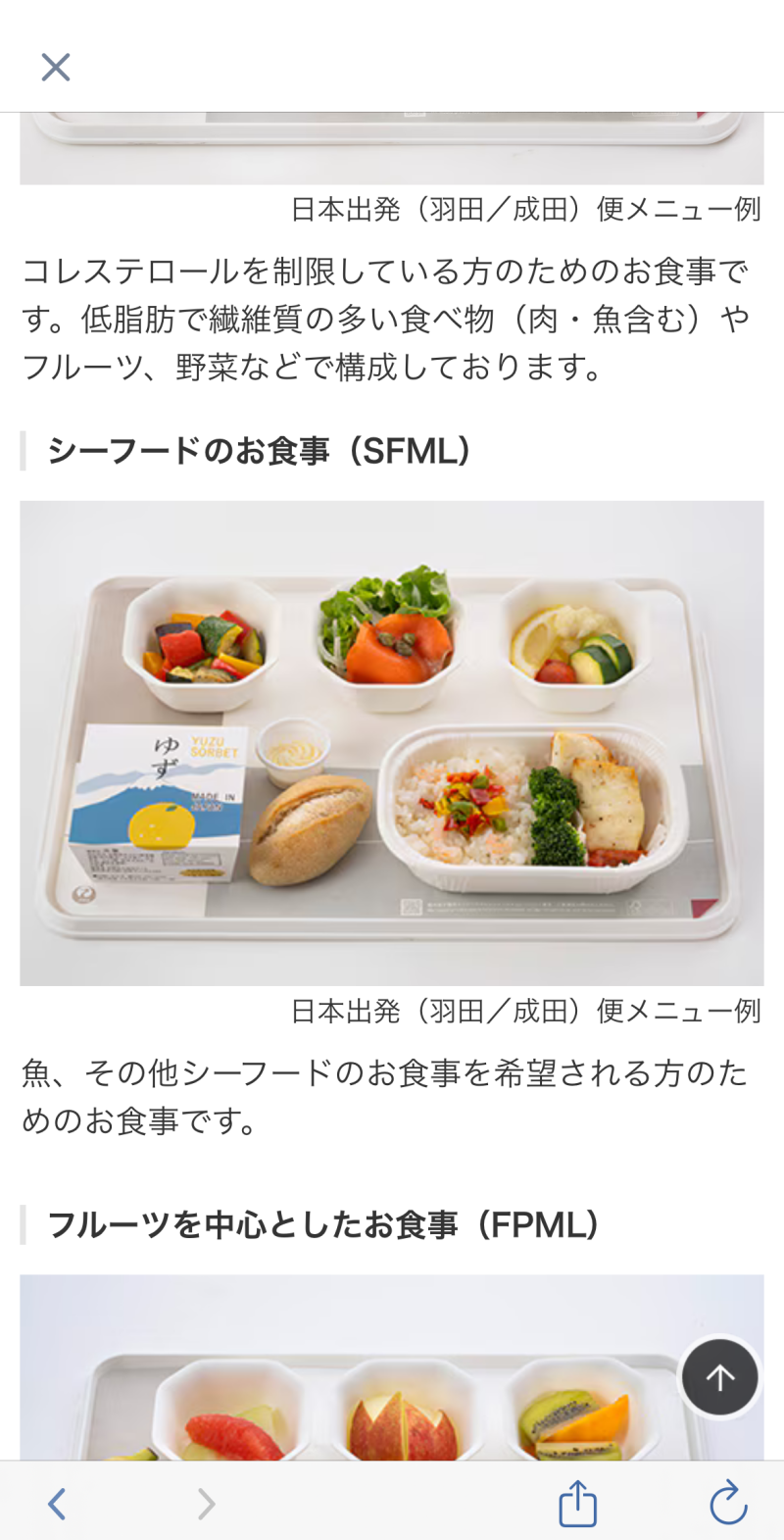 JAL国際線に乗るなら機内特別食をリクエストしてみようその他乗り物・交通 飛行機 旅行スタイル 基礎知識 機内食39view dory 2025年12月4日更新 ツイート <前の写真へ↑写真一覧へ次の写真へ>写真:dory投稿:2025年11月28日メニュー例写真などととも食事の詳細表示(ケータイアプリ画面)