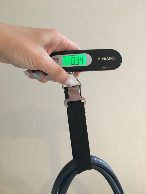 こちらもオーバーショッピングの救世主。重さを測りたい鞄の取っ手にひっかけ、持ち上げると重さが測れる優れもの。女子旅では必ず持参し、帰国前日に必ずに同行者から、「それ貸して~!」と言われる便利グッズです。これも事前に調べてネットで購入しておくのが吉ですよ◎