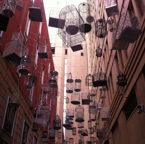 シドニーの街を歩いていたら、突然現れた鳥カゴたち!思わず写真を撮ってしまいました。