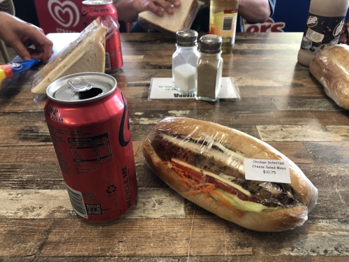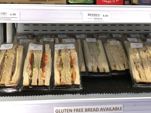 移動中の昼食は、ほとんどがガソリンスタンドに併設されたコンビニ的なお店で買って食べましたが、選択肢があまり無く、大体サンドイッチ的なパン類でした。