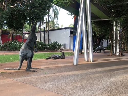 郊外のおしゃれな町といった感じで、カンガルーの銅像やユニークな壁画がお出迎え。