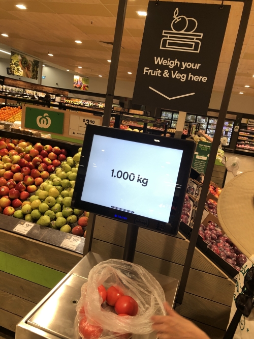 ニューマンのwoolworthsで食料品などを買い出し。野菜や果物はあらかじめパックになっているものもありますが、さすがオーストラリア、必要な分だけ量り売りもしています。1kg以上だと安くなるセール品でぴったり合ったのは奇跡(笑)