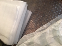 写真:aka-region 筆者愛用のmarimekkoのサブ財布 |  写真:aka-region 緩衝材は日頃から集めておく |  写真:aka-region 乾燥対策のハンドクリームやリップクリームの愛用品。外国製のものが多い。 |
